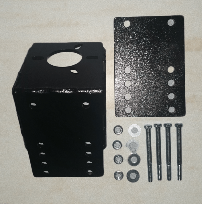 Mounts to the side of a tube type trailer tongue to allow a Jack-E-Up unit and accessories and an A Frame jack to be used on a tube type tongue trailer.
